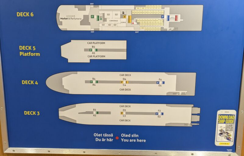エケロラインの船内マップ+無料座席の場所をご紹介します。