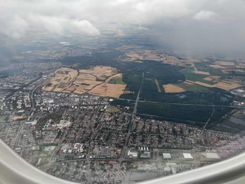 隣のフランクフルトから来る便のレーンから出てくるよ