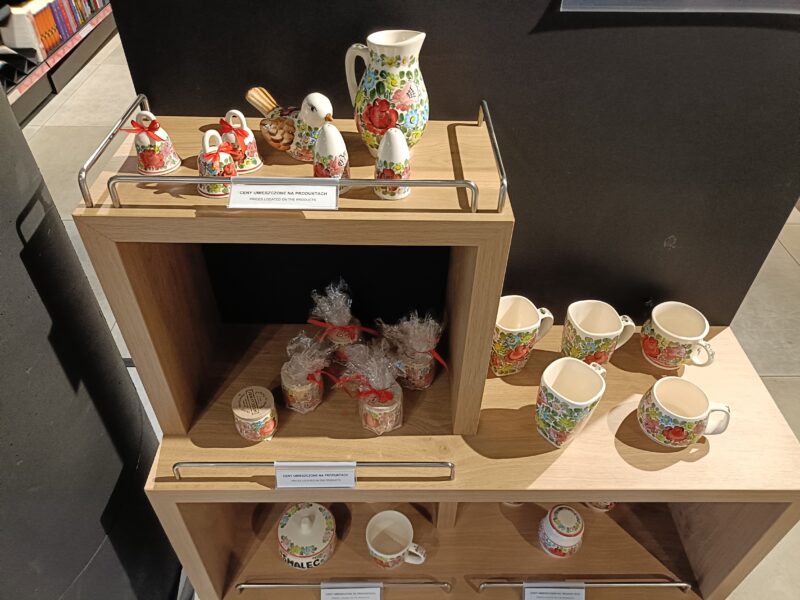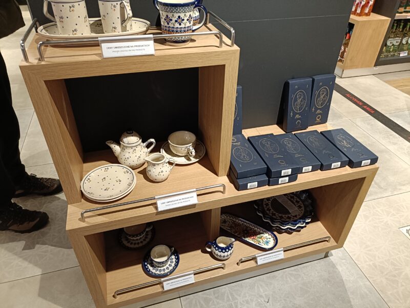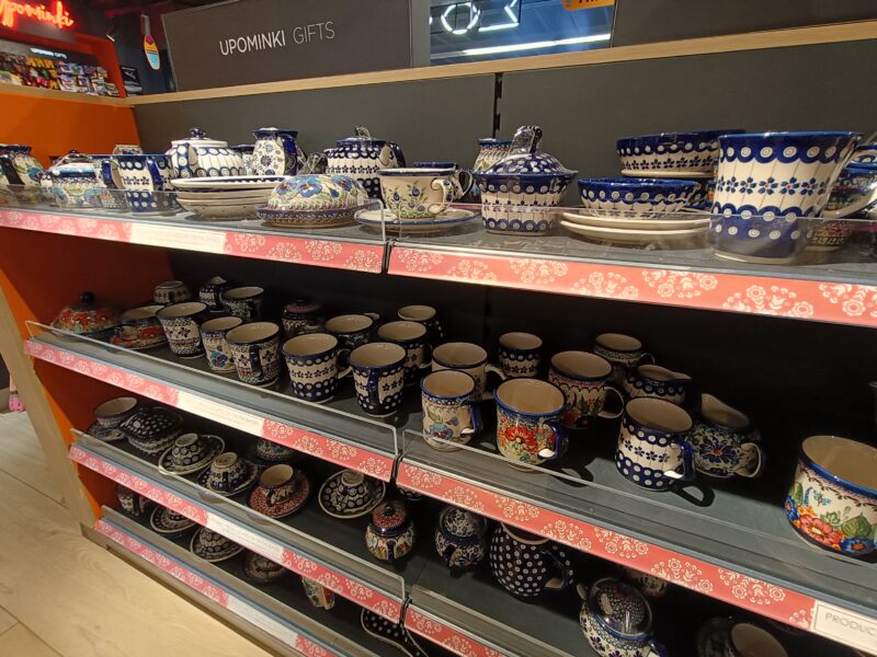 ポーランド国内だったらポーリッシュポタリーが安いらしいと何かの記事で読んで、期待して空港内のお土産屋さんを見て回ること数件目。